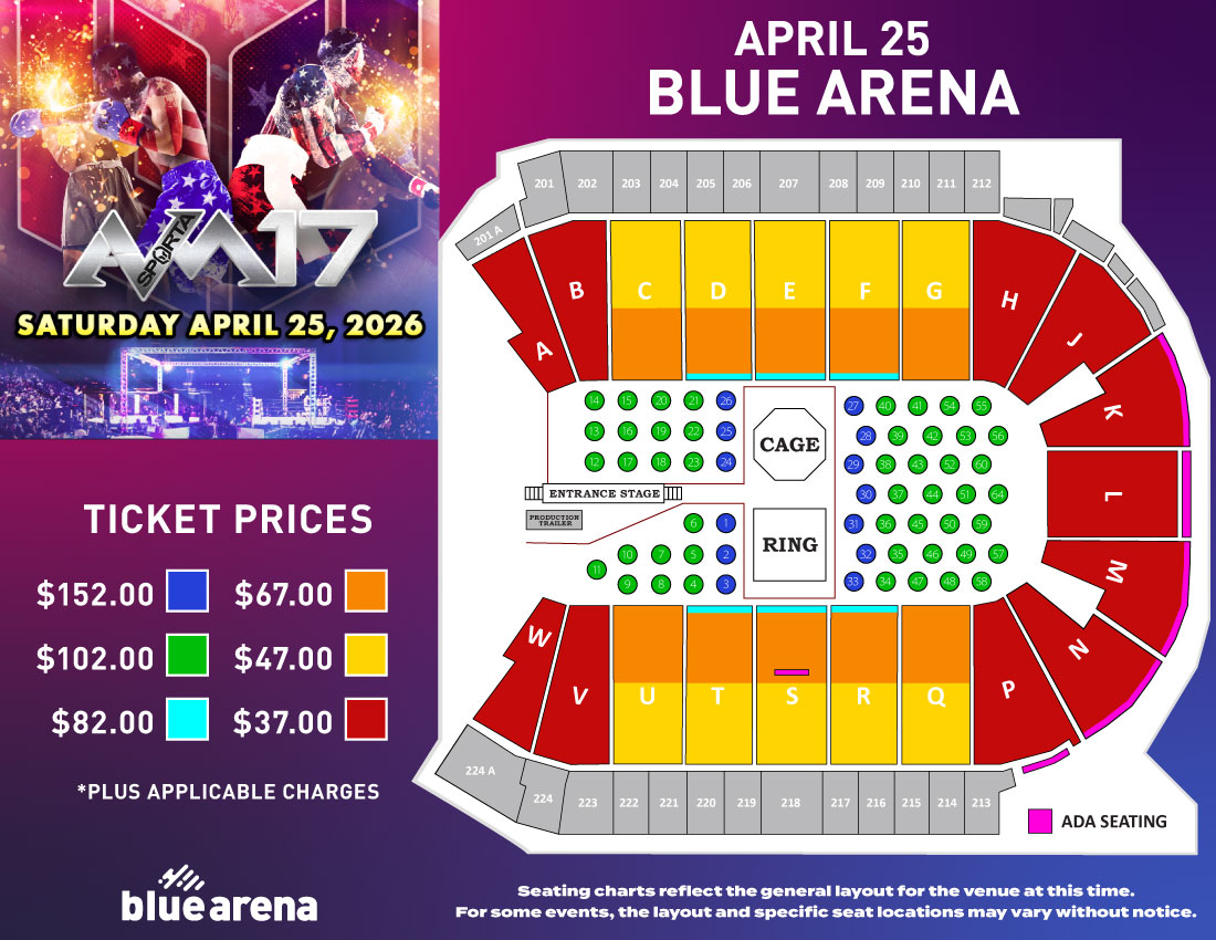 Sparta Sports & Entertainment returns on April 25, 2026, to Blue Arena with Sparta AVM 17 Combat Sports Show featuring Bare Knuckle Boxing, MMA, Boxing, Muay Thai and Kickboxing. Come witness the epic thrill ride that will keep you on the edge of your seat all night long!